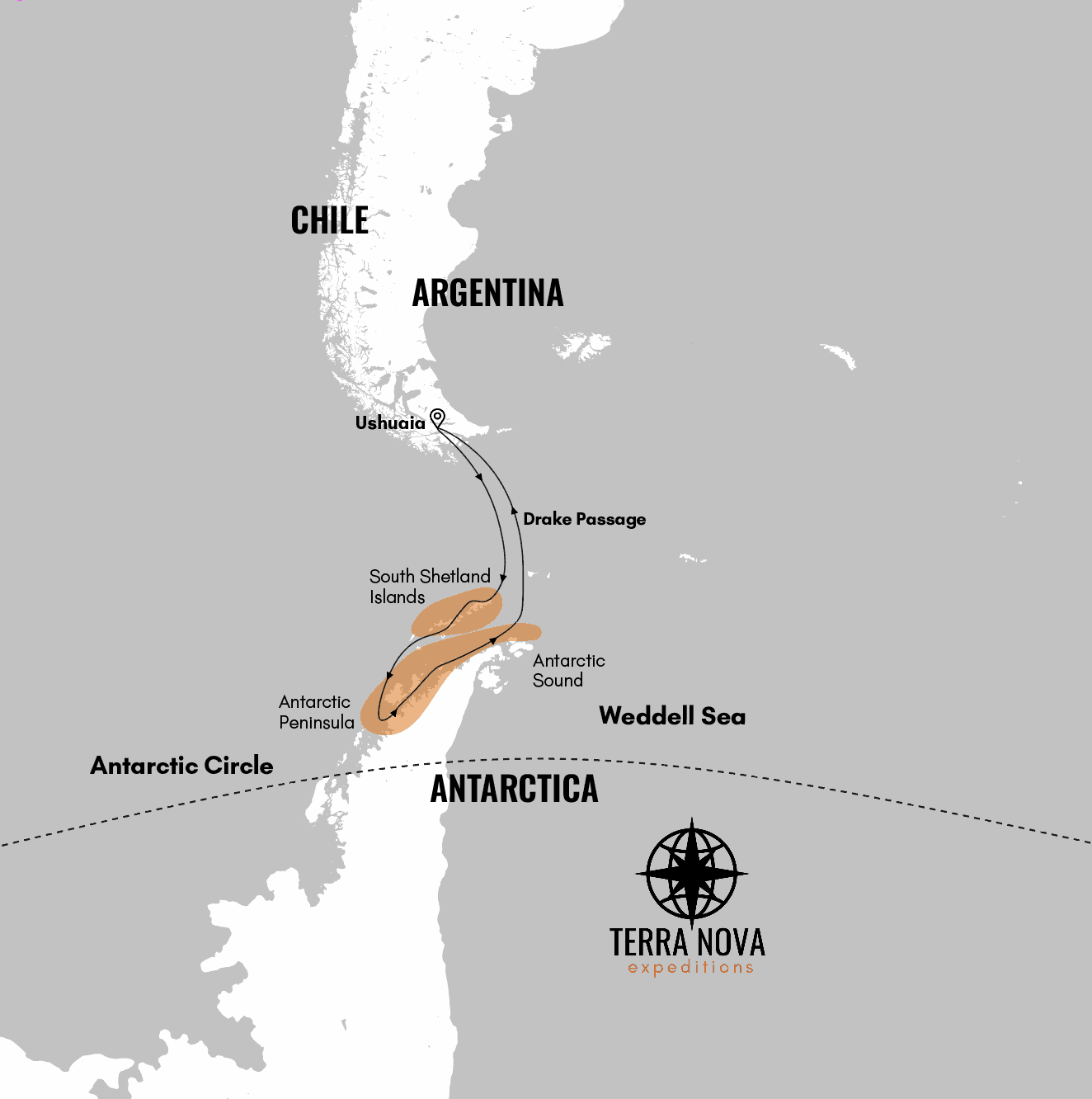 Die Expeditionsreisen von Terra Nova Expeditions in die Antarktis finden an Bord kleiner, charaktervoller Schiffe statt, die speziell für intensive Erlebnisse in der Antarktis konzipiert wurden. Im Mittelpunkt steht nicht das Schiff, sondern das Ziel – die unberührte Polarwelt.