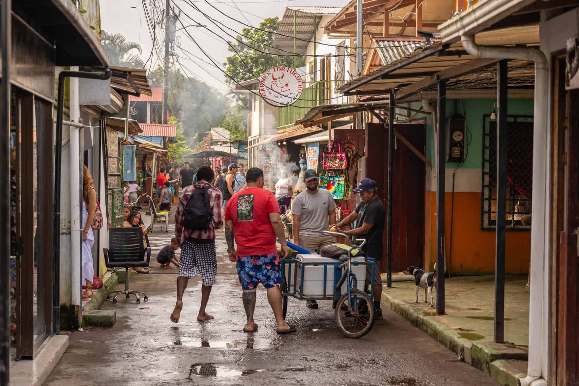 Am nächsten Morgen wurden wir nicht von einem Wecker, sondern vom urzeitlichen Ruf der Brüllaffen geweckt – ein unvergesslicher Moment! Kurz darauf begann unser Programm: eine ausgedehnte Bootsfahrt durch die Kanäle des über 300 Quadratkilometer großen Nationalparks. Auf immer schmaleren Wasserwegen glitt unser Boot tiefer in den Dschungel. Wir konnten uns kaum sattsehen an der Vielfalt: unzählige schillernde Vogelarten, majestätische Leguane, verspielte Affen und tiefenentspannte Faultiere. Am Nachmittag besuchten wir das Dorf Tortuguero, eine faszinierende Welt ohne Autos und Asphalt. Hier leben rund 1000 Einheimische und Touristen in einer einzigartigen Symbiose. Ein Ort voller Leben, wo neben bunten Souvenirständen die Wäsche im Wind trocknet und kleine Bars eiskalte Cocktails und frische Kokosnüsse servieren.